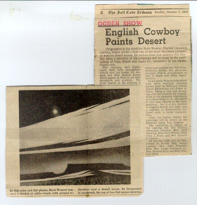 The Salt Lake Tribune. 7 October 1945. "English Cowboy Paints Desert".