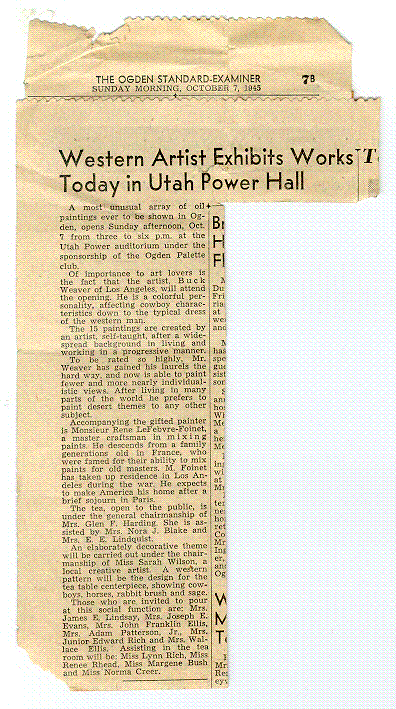 The Ogden Standard-Examiner. 2 September 1945. "Art Week in Ogden".