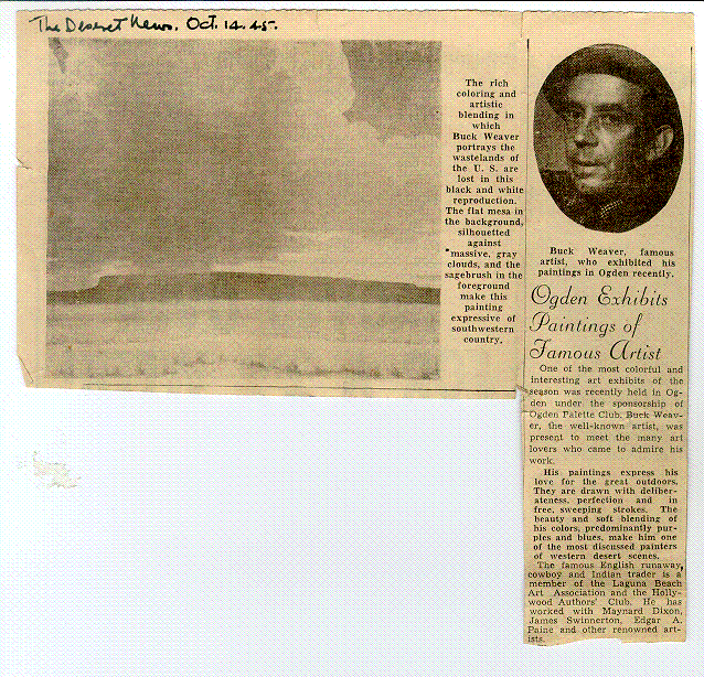 The Desert News. 14 October 1945. "Ogden Exhibits Paintings of Famous Artist".