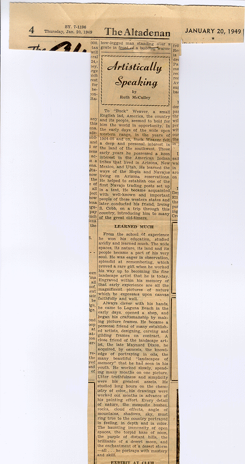 The Altadenan. 20 January 1949. "Artistically Speaking".