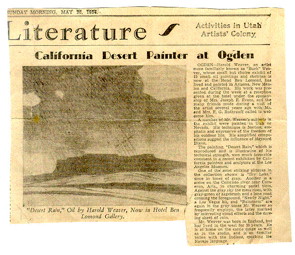 The Salt Lake Tribune. 20 May 1934. "California Desert Painter at Ogden".