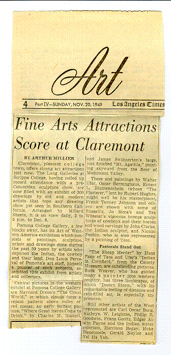 Los Angeles Times. 20 November 1949. "Fine Arts Attractions Score at Claremont".