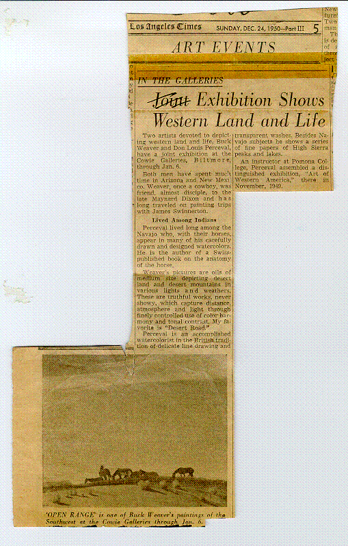 Los Angeles Examiner. 19 December 1950. "Weaver Art Show On in Biltmore".
