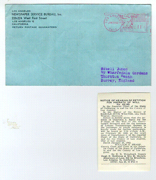 Los Angeles Newspaper Service Bureau. Notice of Hearing of Petition for Probate of Will.